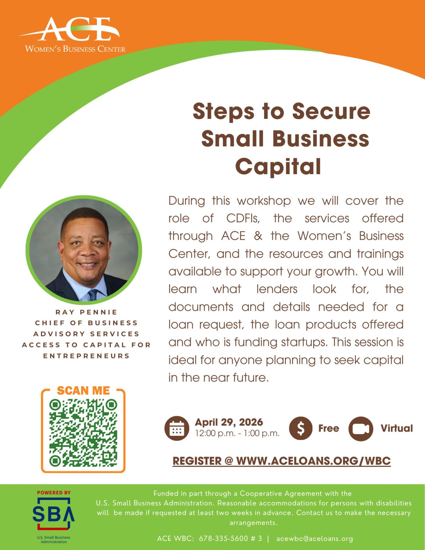 During this workshop, we will cover the role of CDFIs, the services offered through ACE & the Women’s Business Center, and the resources and trainings available to support your growth. You will learn what lenders look for, the documents and details needed for a loan request, loan products offered, and who is funding startups. This session is ideal for anyone planning to seek capital in the near future.